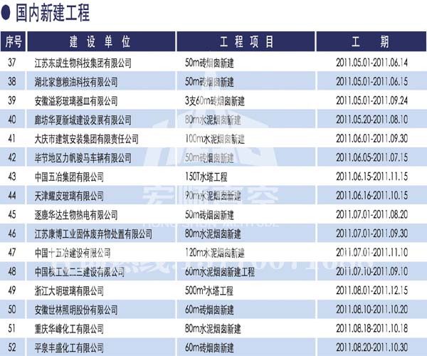 • 煙囪新建宏順建設工程有限公司是一家專業從事煙囪新建,煙囪防腐,煙囪內壁防腐,煙囪脫硫防腐,磚煙囪新建,水泥煙囪新建,鋼煙囪新建,水泥煙囪防腐,混凝土煙囪新建,煙囪拆除,煙囪維修,煙囪脫硫防腐等工程!咨詢熱線:13770071688。